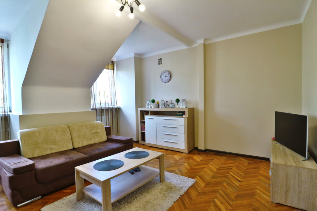 Mieszkanie dwupokojowe usytuowane na trzecim piętrze w budynku przy ulicy Białej w ścisłym centrum miasta.