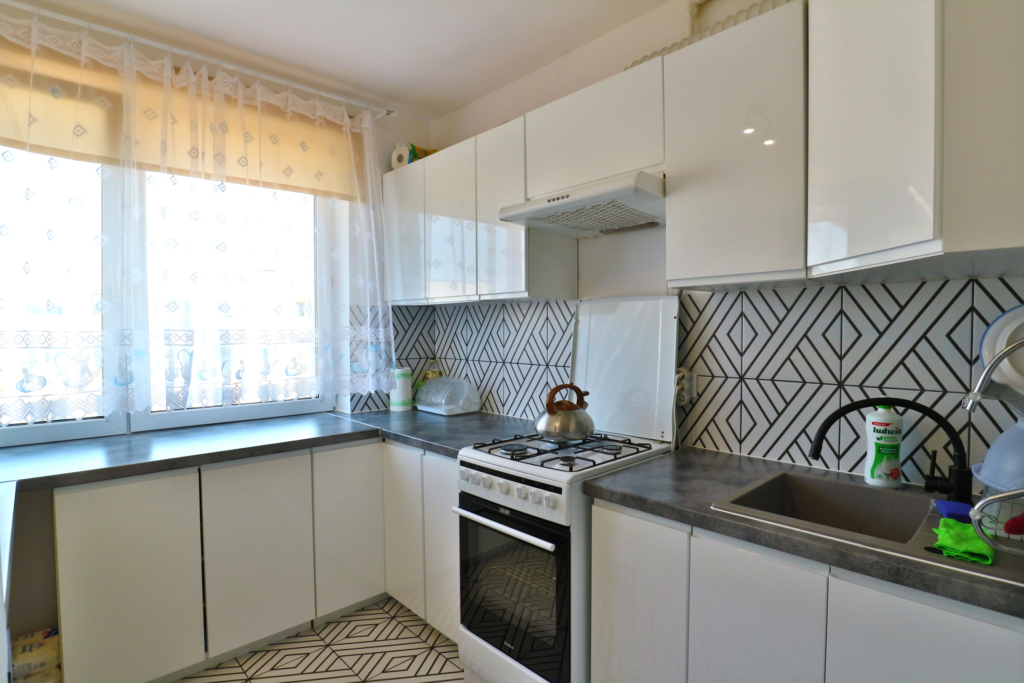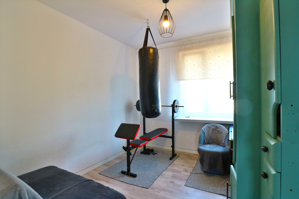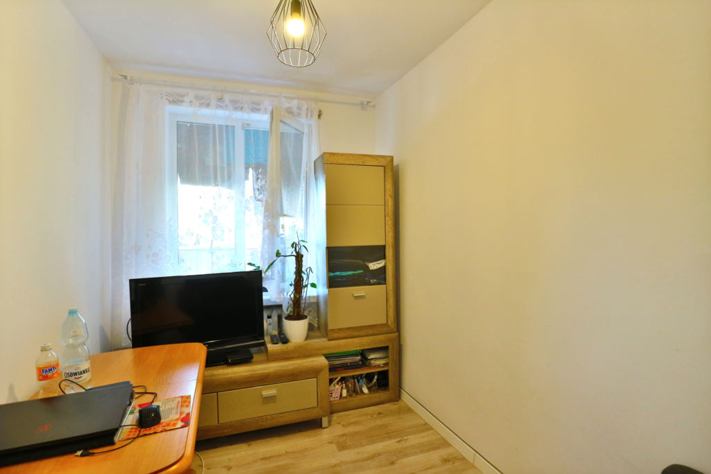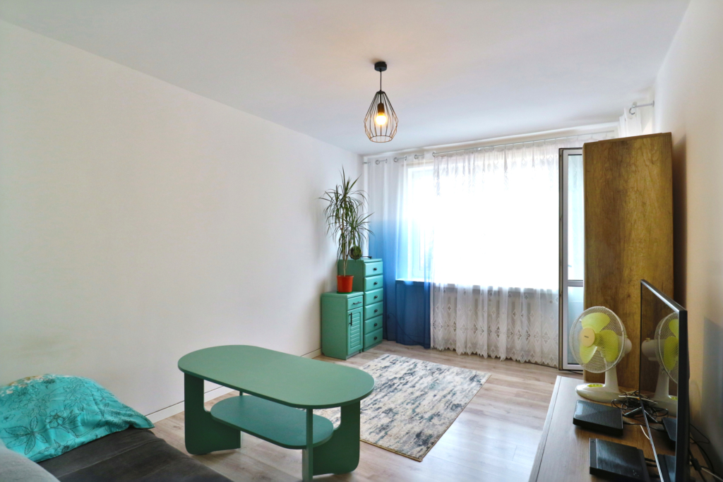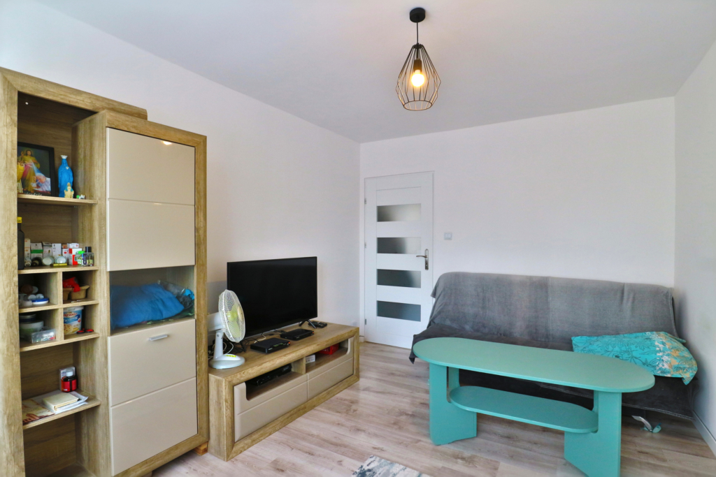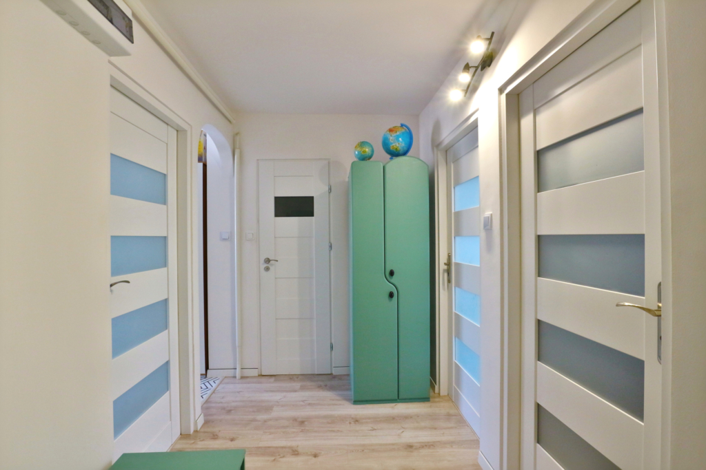 Wnętrze po remoncie. Okna pcv; podłogi panel/terakota, ściany gładkie malowane.