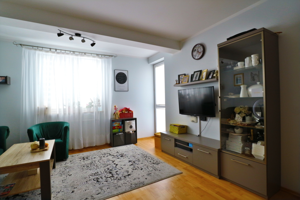 Mieszkanie dwupokojowe o powierzchni 43,04m2 usytuowane na szóstym piętrze w bloku przy ulicy Wiadukt w dzielnicy Nowe Miasto.