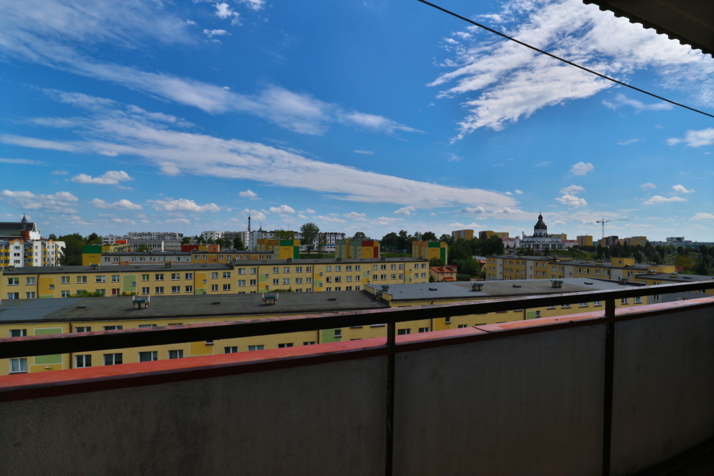 Mieszkanie o o powierzchni 47,10 usytuowane na ósmym piętrze w bloku z windą przy ulicy Zagórnej w dzielnicy Dziesięciny.